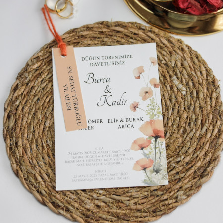 Davetiye fiyatı en az 100 adet için geçerlidir. 100 ve katları şeklinde sipariş...