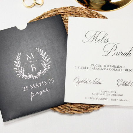 Bu üründe İç kartında Ofset Tek Renk, Zarfında Gümüş Varak Yaldız Baskı kullanılmıştır.