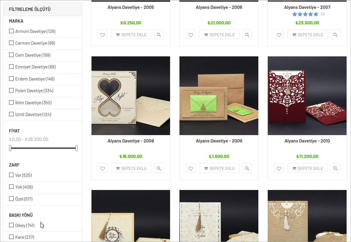 Binlerce model ve özellikleri olan davetiyelerde istediğiniz ürünü bulmak gerçekten çok zor olabilmekte. bunun yapmanız gerek ise çok basit.