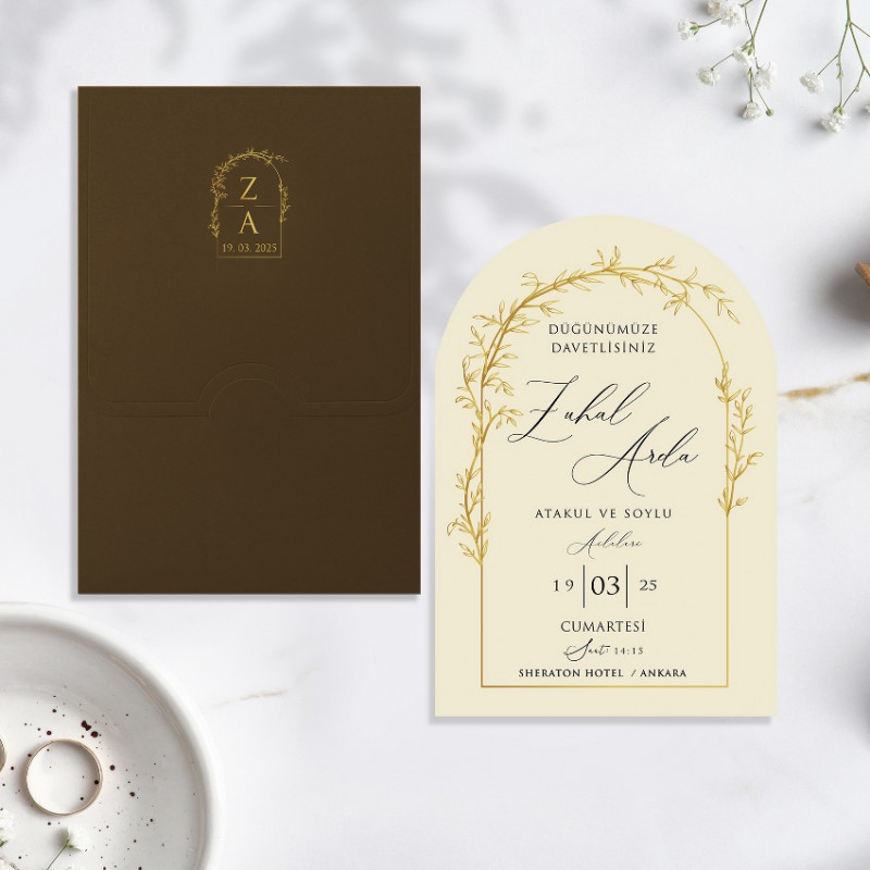 Bu üründe Zarfında Altın Varak Yaldız, İç Kartında Ofset Baskı kullanılmıştır.