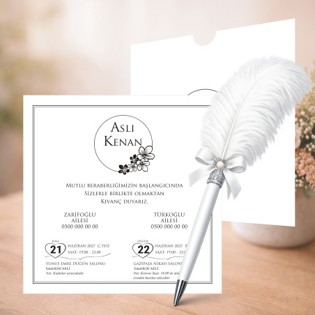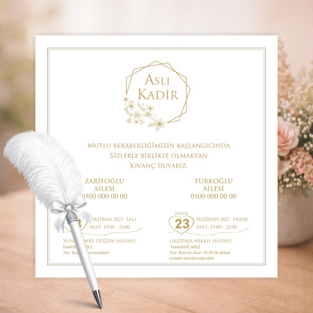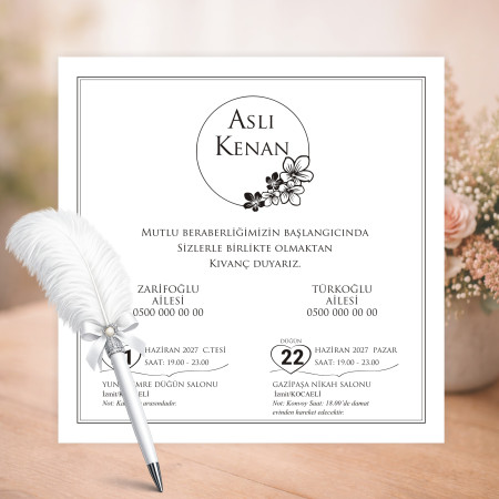 Özel Tasarım Davetiye En özel gününüz için şık ve zarif bir davetiye modeli. Kaliteli kağıt ve özenli baskı ile hazırlanan bu ürün, davetinize değer katar.