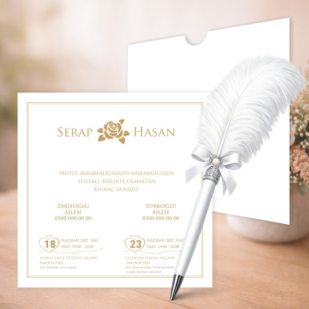 Özel Tasarım Davetiye En özel gününüz için şık ve zarif bir davetiye modeli. Kaliteli kağıt ve özenli baskı ile hazırlanan bu ürün, davetinize değer katar.