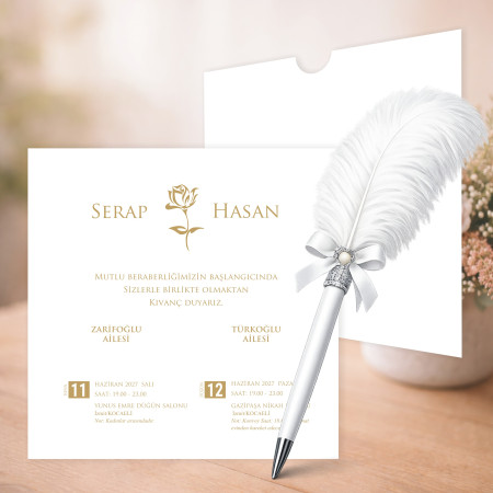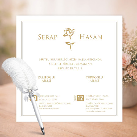 En özel gününüz için şık ve zarif bir davetiye modeli. Kaliteli kağıt ve özenli baskı ile hazırlanan bu ürün, davetinize değer katar.