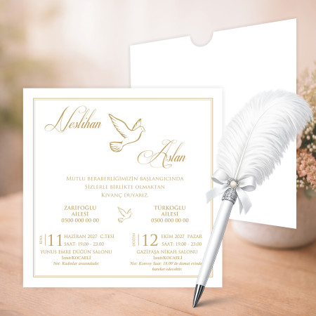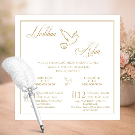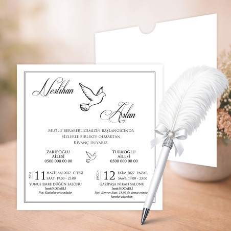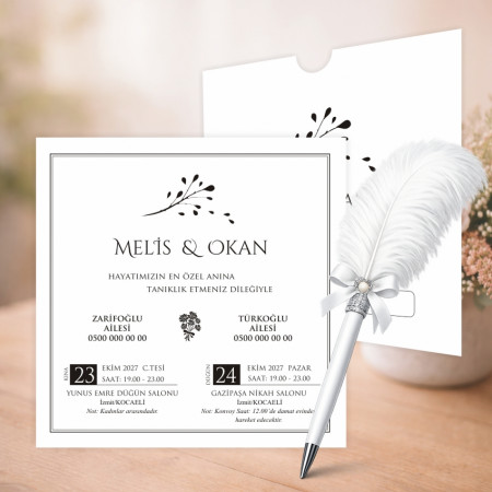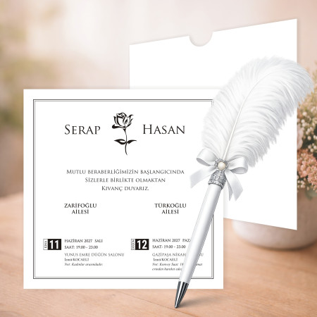 En özel gününüz için şık ve zarif bir davetiye modeli. Kaliteli kağıt ve özenli baskı ile hazırlanan bu ürün, davetinize değer katar.