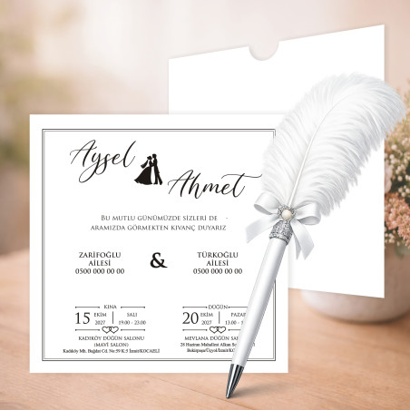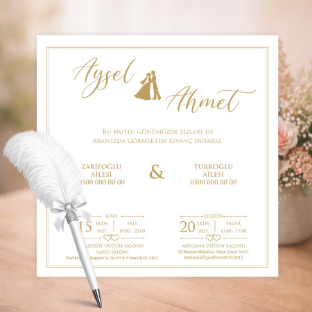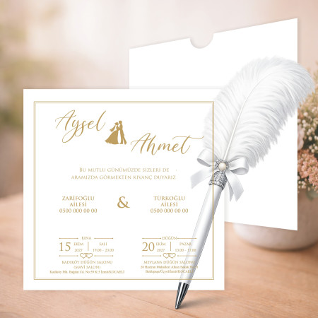 En özel gününüz için şık ve zarif bir davetiye modeli. Kaliteli kağıt ve özenli baskı ile hazırlanan bu ürün, davetinize değer katar.