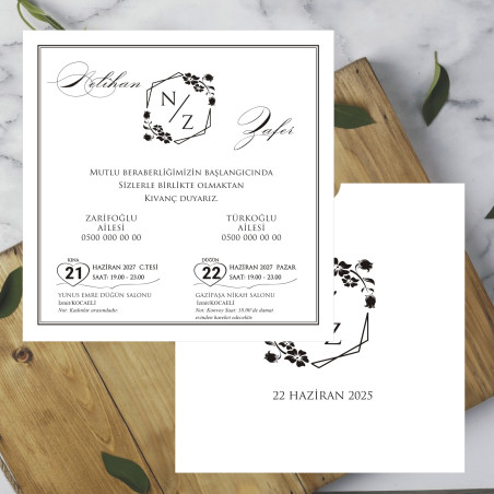 Özel Tasarım Davetiye En özel gününüz için şık ve zarif bir davetiye modeli. Kaliteli kağıt ve özenli baskı ile hazırlanan bu ürün, davetinize değer katar.
