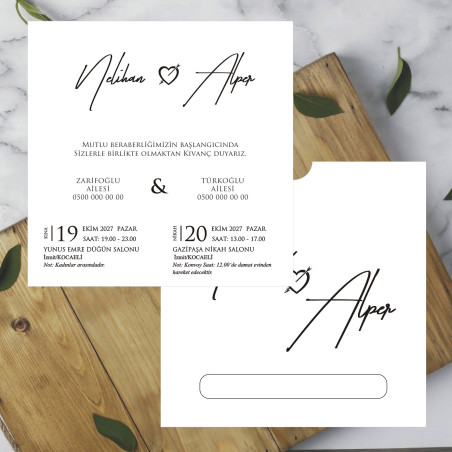 En özel gününüz için şık ve zarif bir davetiye modeli. Kaliteli kağıt ve özenli baskı ile hazırlanan bu ürün, davetinize değer katar.