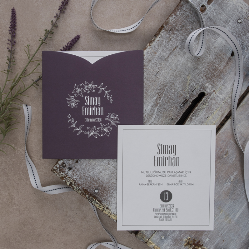 Bu üründe Zarfında Gümüş Varak Yaldız ve İç Kartında Tek Yönlü Ofset Baskı kullanılmıştır.