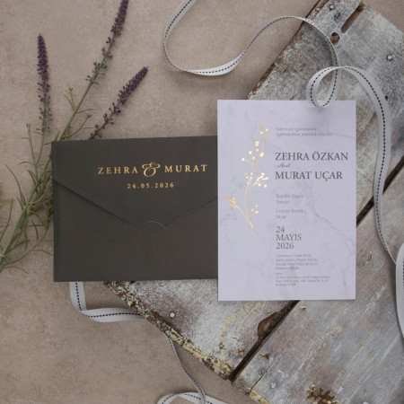Bu üründe Zarfında Altın Varak Yaldız ve İç Kartında Tek Yönlü Ofset Baskı kullanılmıştır.