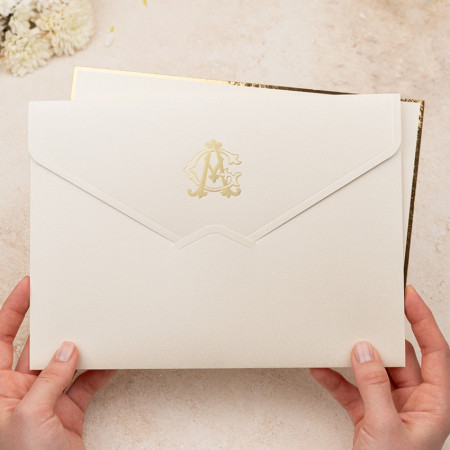 Bu üründe Zarf ve İç kartında Altın Vara Yaldız Baskı kullanılmıştır.