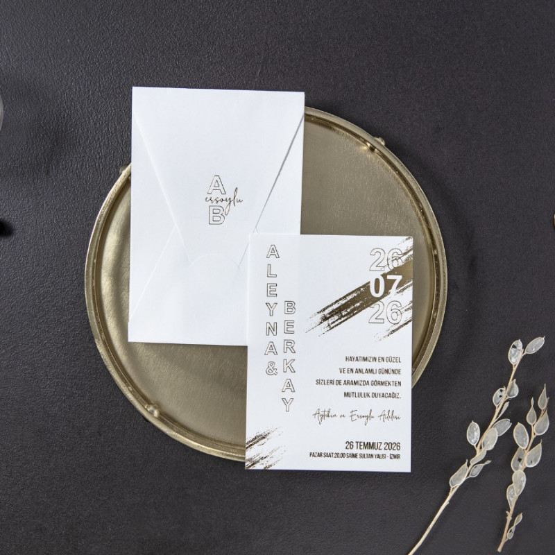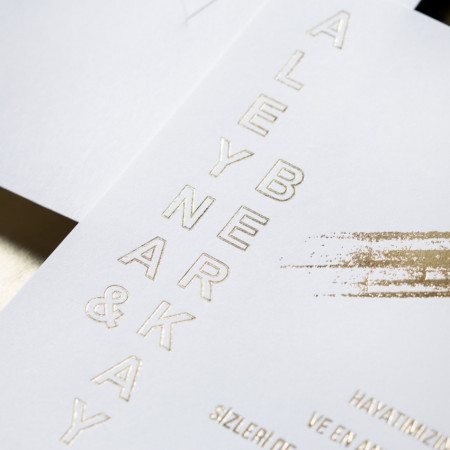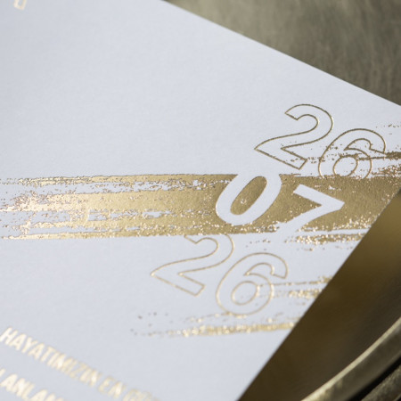 Bu üründe Zarfında ve İç Kartında Altın Varak Yaldız Baskı kullanılmıştır.