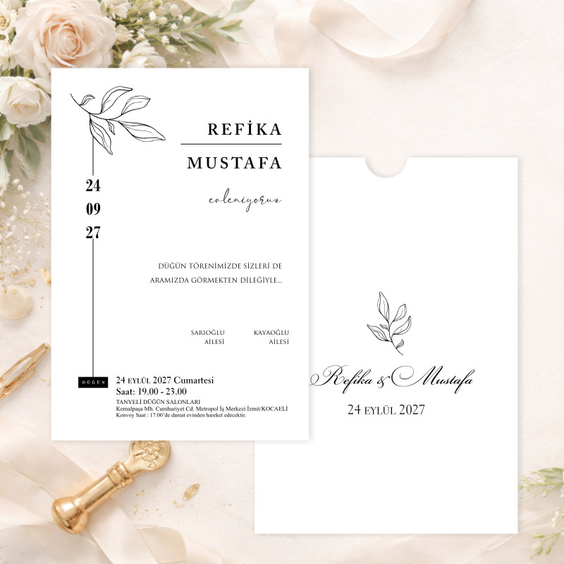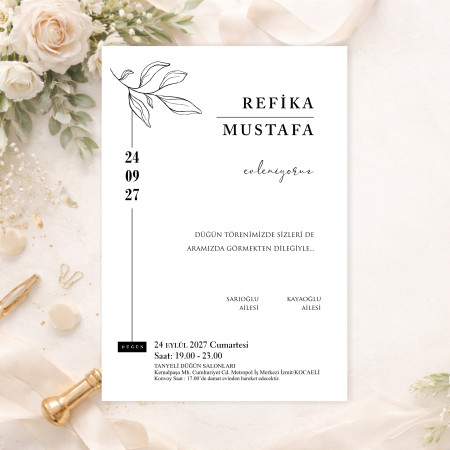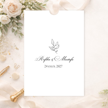 Sade Yaprak Temalı Dikdörtgen Davetiye