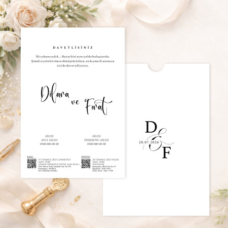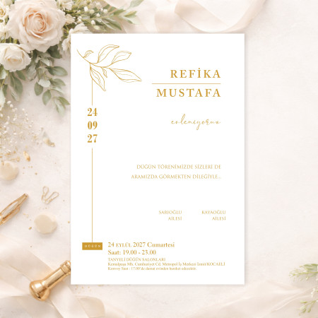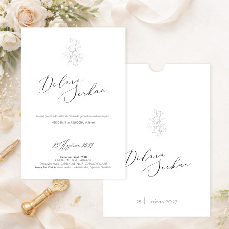 En özel gününüz için şık ve zarif bir davetiye modeli. Kaliteli kağıt ve özenli baskı ile hazırlanan bu ürün, davetinize değer katar.