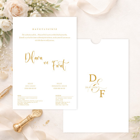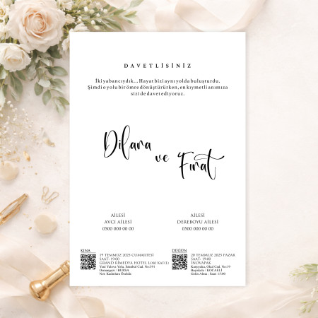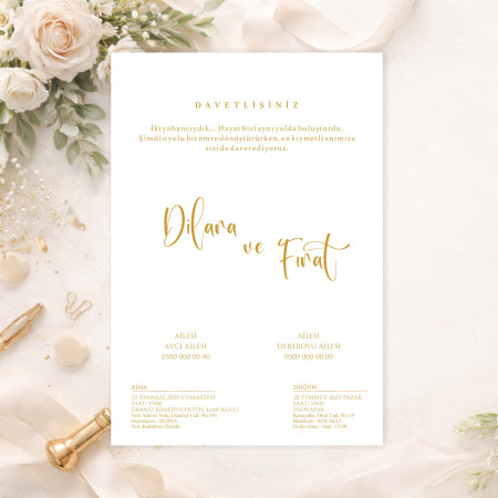 En özel gününüz için şık ve zarif bir davetiye modeli. Kaliteli kağıt ve özenli baskı ile hazırlanan bu ürün, davetinize değer katar.