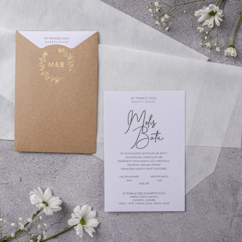 Bu üründe Zarfında Altın Varak Yaldız ve İç kartında Tek Yönlü Ofset Baskı kullanılmıştır.